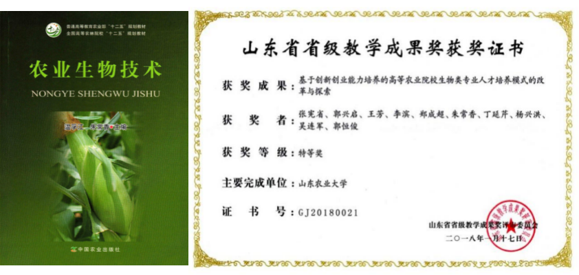 承担了本科生的《农业生物技术》《基因工程综合实验》等课程教学任务,以及《课程设计》《专业实践》《毕业实习》《毕业论文》等实践环节的教学任务,年均工作量400多学时。课堂教学中,勇于创新,灵活采用多种教学方法;“以学生为本”,强化互动,让学生真正成为学习的主体;注重教学内容与科学发展前沿结合,及时更新教学内容,将科研成果引入课堂教学中。根据教学的需要,建成了《农业生物技术》《基因工程综合实验》等课程网络平台,丰富了教学资源,方便了学生自学,提高了教学质量。